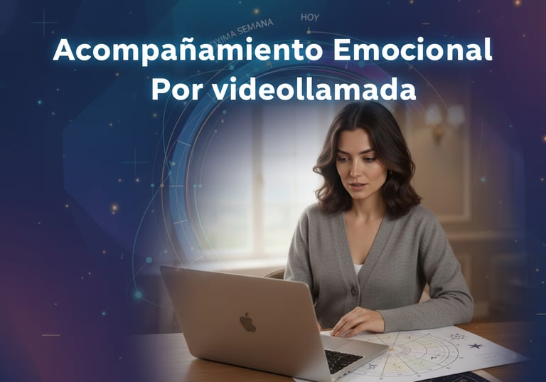 Las sesiones se realizan por videollamada, con una duración aproximada de 45 minutos, en un formato cuidado y flexible, adaptado a tu ritmo y a lo que necesites trabajar en ese momento. La astrología puede estar presente como herramienta de apoyo, siempre al servicio del proceso personal y nunca de forma invasiva.